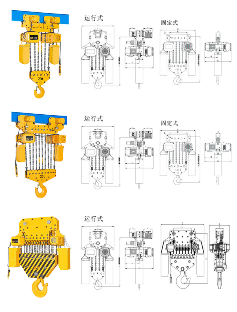 運行式環(huán)鏈電動葫蘆(30T-50T)尺寸參數(shù): |