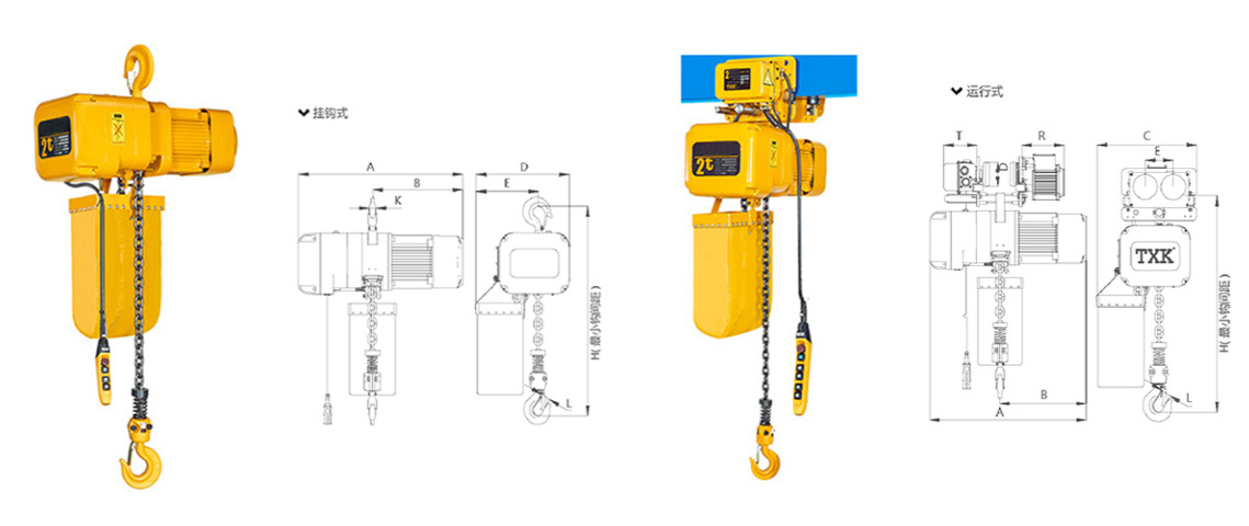 運行式環鏈電動葫蘆0.25T-5T尺寸參數