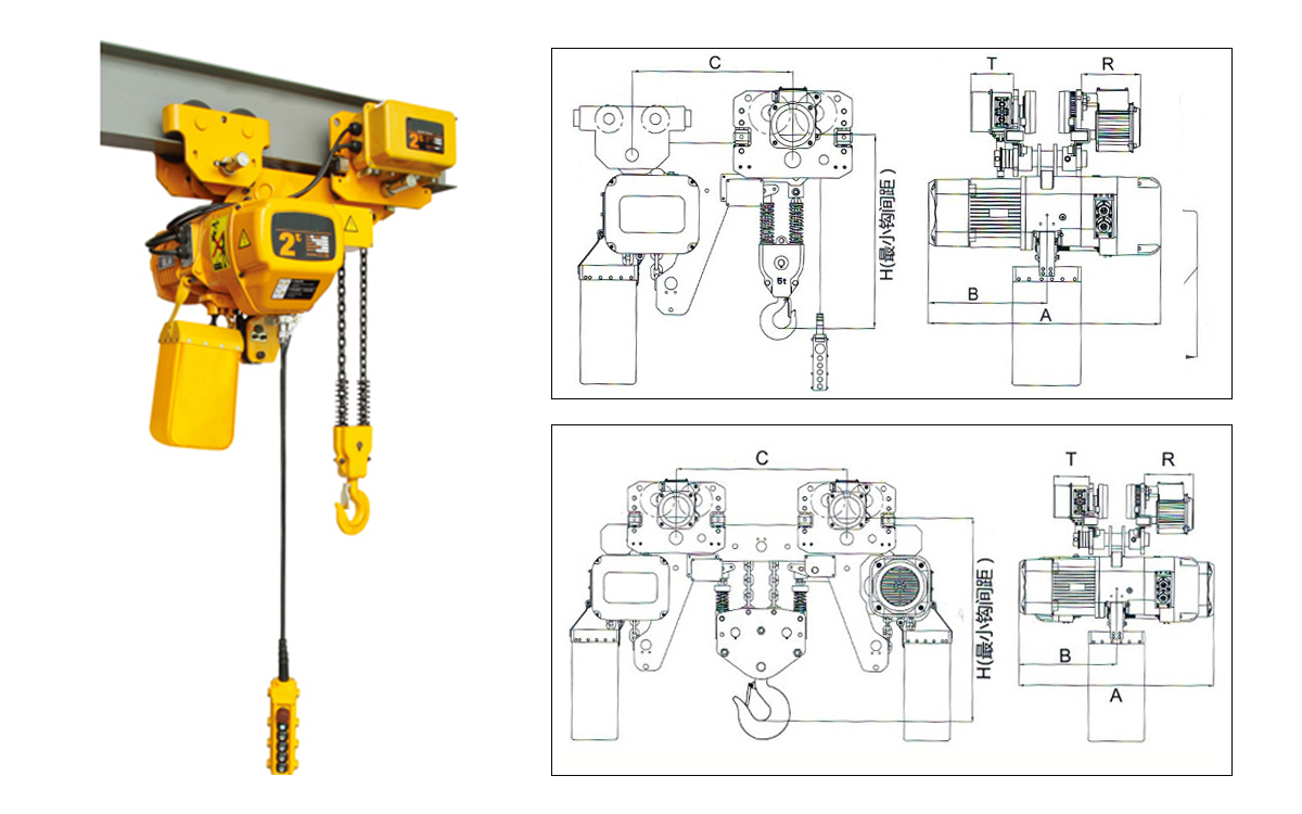 ??????低凈空環鏈電動葫蘆適用于廠房高度較低又對提升高度有嚴格要求的工作場所使用,尤其適用于臨時搭建的廠房內或者在其內需要擴大有效起升空間的場所。低凈空環鏈電動葫蘆由2個跑車以及一個電動主機組合而成。