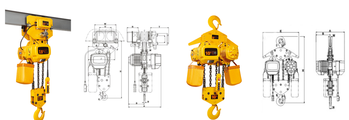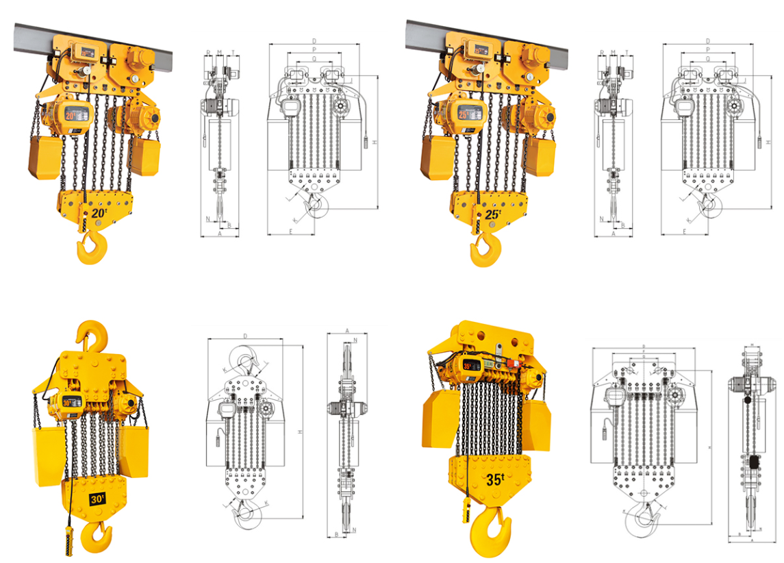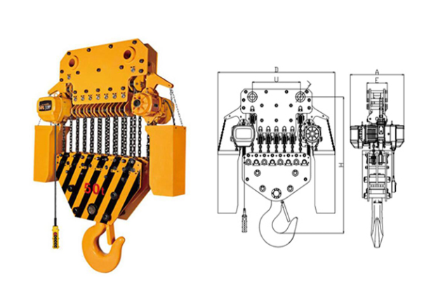 | 掛板式環鏈電動葫蘆(7.5T-50T)?尺寸參考: | ||||||||